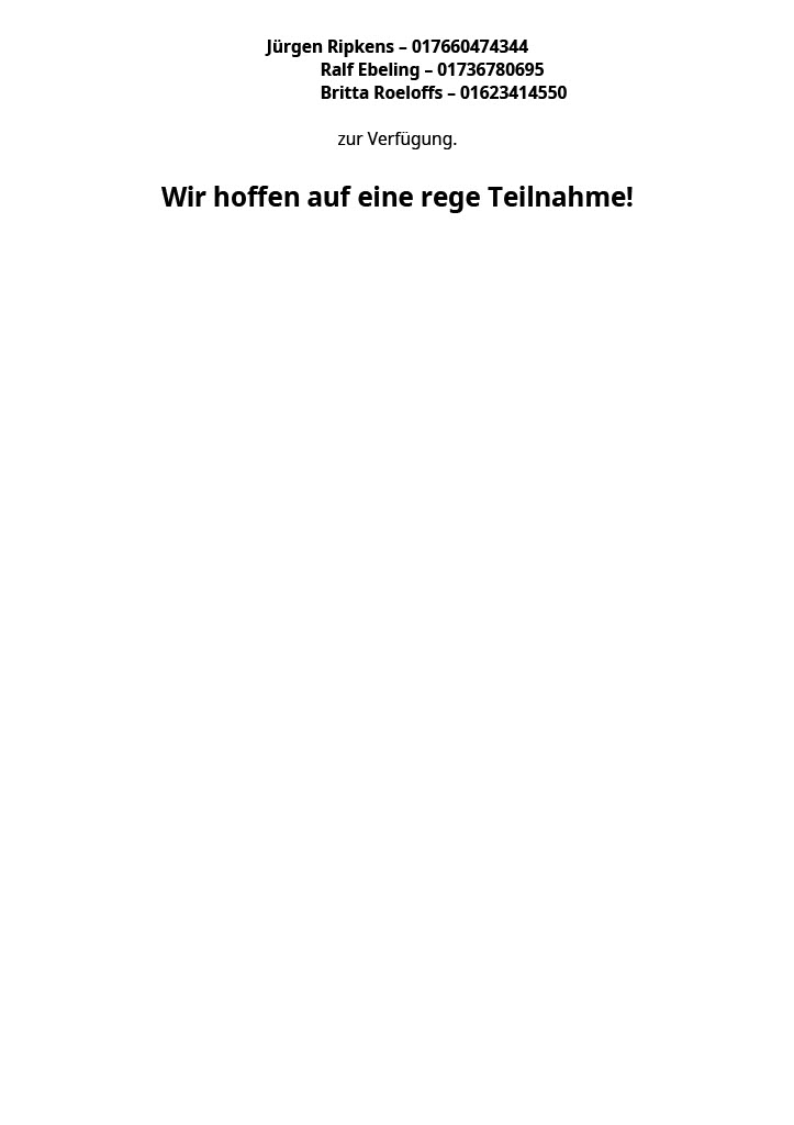 Nach vielen erfolgreichen Jahren haben Kerstin Schick, Inga Holzkamp und Anja Rademacher ihre Ämter übergeben. Danke für alles! Neu im Team sind Jochen Rademacher (1. Vorsitzender), Peter Bruckschen (2. Vorsitzender) und Jan Lingner (Schatzmeister). Gemeinsam mit euch wollen wir unseren Verein weiter voranbringen.