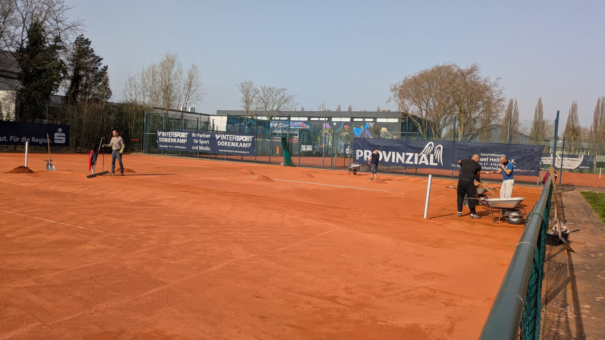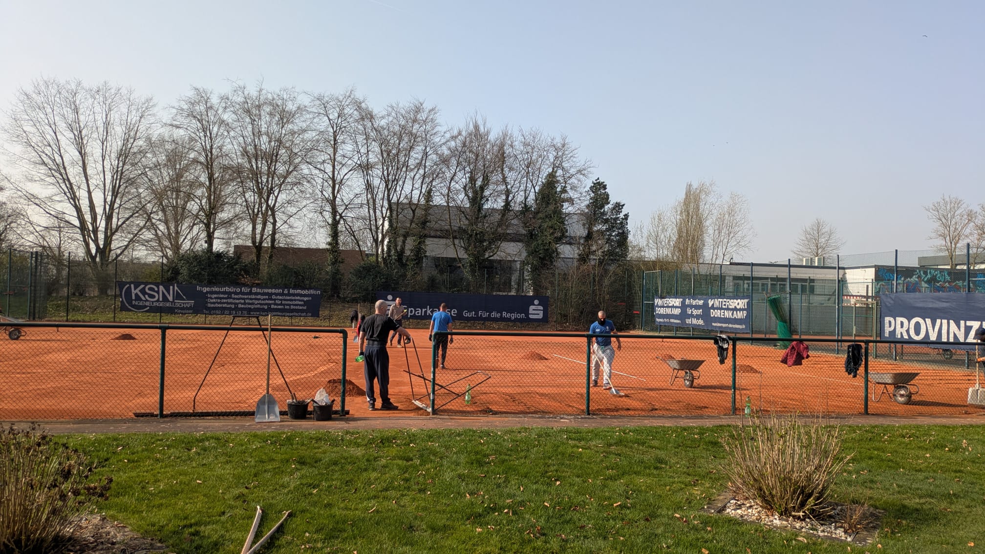 Liebe Mitglieder und Freunde des Tennisvereins Blau-Weiss Kevealer,wir freuen uns, euch mitteilen zu können, dass unsere Tennisplätze nach dem Winter durch unseren geschätzten Platzaufbereiter wieder optimal vorbereitet wurden. Die Plätze sind nun in bestem Zustand und bereit für viele spannende Matches!Darüber hinaus möchten wir uns herzlich bei all den fleißigen Helfern bedanken, die in den letzten Wochen unermüdlich daran gearbeitet haben, unsere Anlage für den Sommer herauszuputzen. Euer Einsatz hat dazu beigetragen, dass wir uns auf eine schöne und erfolgreiche Saison freuen können.Wir laden euch ein, die Plätze zu nutzen und gemeinsam mit uns die Freude am Tennis zu erleben!